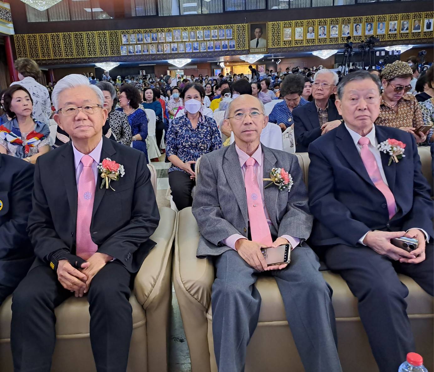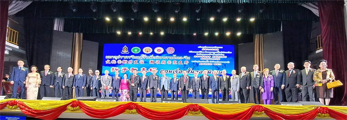 泰國潮安同鄉會代理事長陳欽華副理事長許培松鄭惠安參加25號潮劇演出剪綵