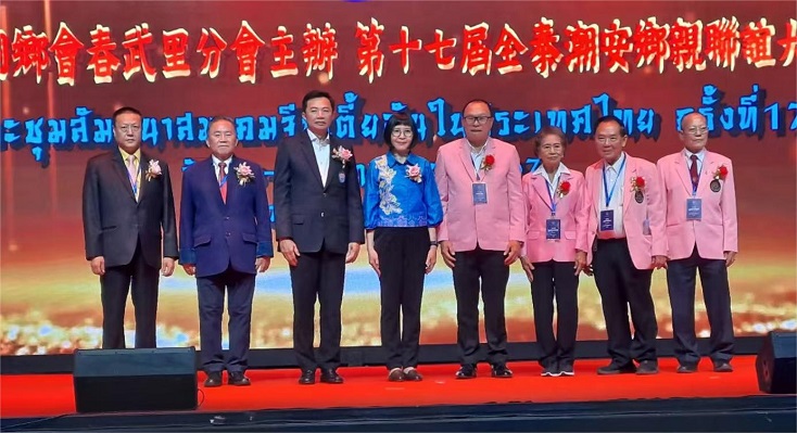 宴会开始,全体起立,奏泰国国歌,席间进行大型文艺表演,尽显热烈隆重气氛。大会开始,首先由泰国潮安同乡会同乡会春武里分会柯瑞娇理事长致欢迎辞。她表示能得到这第十七次全泰乡亲联谊大会的主办权,感到非常光荣,同时也是责任重大。我们虽然尽最大的努力,但疏漏在所难免,若有不周到之处,期望见谅。