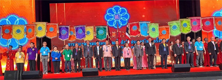 第二位致词,泰国潮安同乡会总会吴炳林理事长,用泰语作了精彩的发言。首先感谢潮安同乡会春武里分会,在柯瑞娇理事长的领导下,做了大量的筹备工作,取得了今天有目共睹的成功。潮安同乡会自成立一百年来,在历届理事长和全体理事的共同努力下,出钱出力,会务不断发展,我们要不忘初心,砥砺前行。