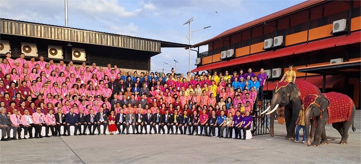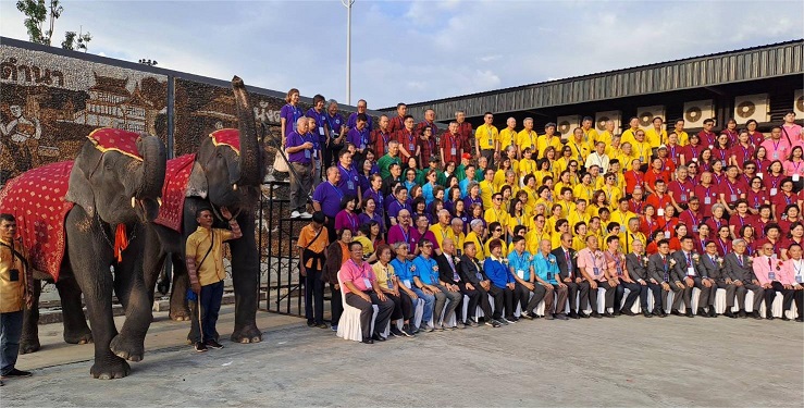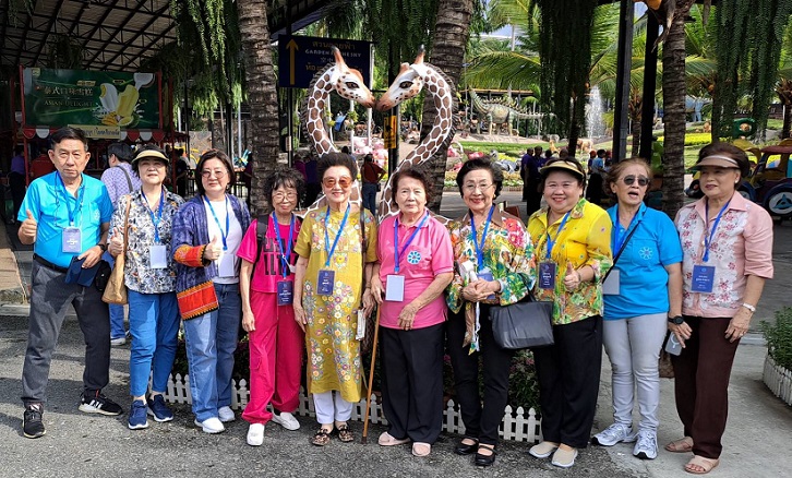 今天全泰二十一个分会和联络处,总共有约五百人前来参加盛会,人气兴旺,热闹非凡。中午在里罗大餐厅吃过自助餐,入住乐园酒店。午休片刻,两点半集中,乘车到第一个景点去旅游照相,欣赏大象的精彩表演,其乐融融。